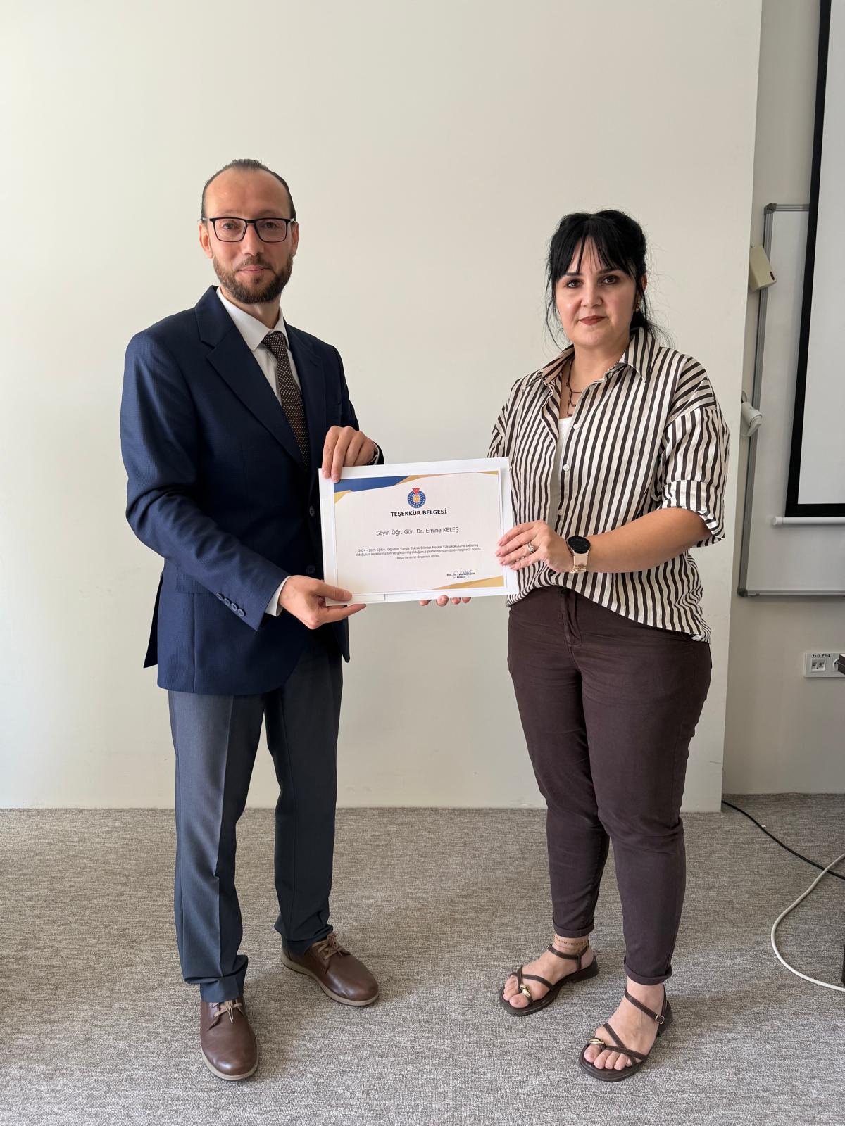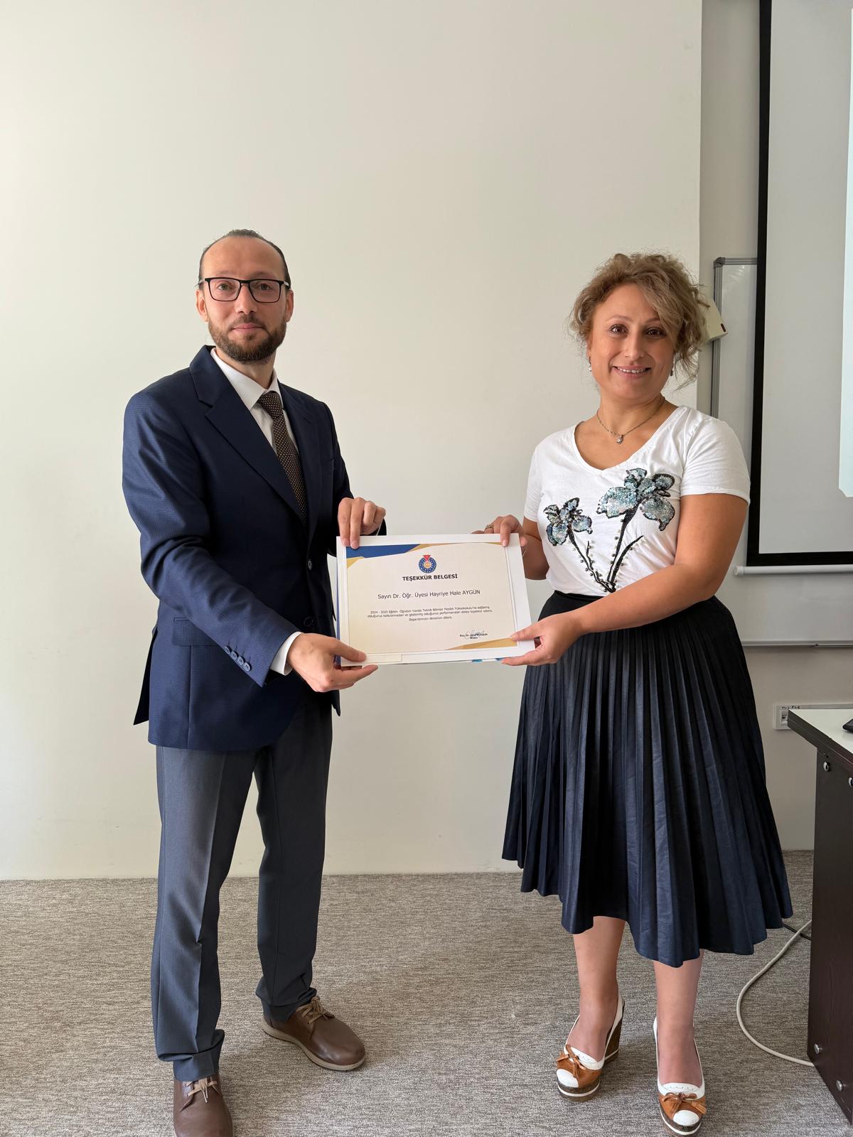 30.09.2025 - Bölüm öğretim elemanlarımıza, 2023 - 2024 Eğitim Öğretim Yılı'nda sergiledikleri akademik başarı ve yüksek performans nedeniyle teşekkür belgesi takdim edilmiştir.